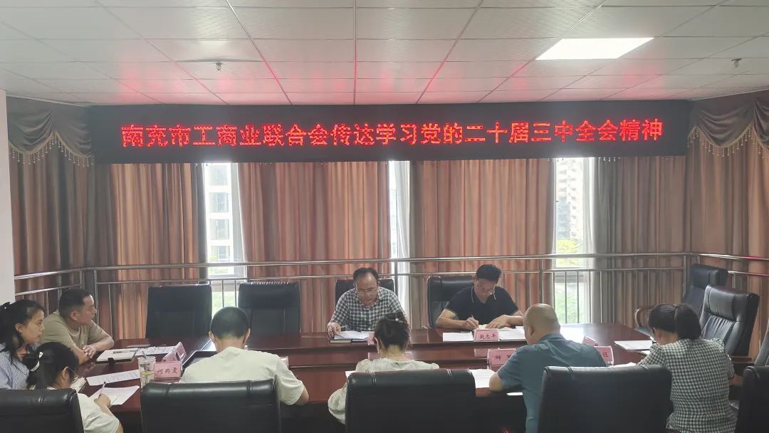 会议要求,市工商联要把学习宣传贯彻党的二十届三中全会精神作为当前和今后一个时期的首要政治任务,切实把全市工商联系统干部职工和广大民营经济人士的思想和行动统一到中央决策部署上来,确保党的二十届三中全会精神不折不扣贯彻到民营经济领域,落实到工商联工作全过程、各方面。一要提高政治站位,学深悟透精神实质。采取集中学习、“三会一课”、主题党日等形式,在全市工商联系统迅速掀起学习宣传贯彻党的二十届三中全会精神的热潮,引导全体机关干部职工和市工商联所属商协会负责人原原本本研读习近平总书记重要讲话和中央《决定》、全会《公报》,深刻领悟丰富内涵、准确把握精神实质,不断提高政治判断力、政治领悟力、政治执行力,坚定捍卫“两个确立”、坚决做到“两个维护”。二要强化宣传引导,凝心聚力宏图伟业。通过网站、微信公众号等媒体,结合“四下基层”走访调研,深入开展全会精神宣讲解读,推动全会精神进基层、进商会、进企业,切实增强以中国式现代化全面推进强国建设、民族复兴伟业的感召力、凝聚力、影响力,引导广大民营经济人士听党话、感党恩、跟党走,创新创业、聚焦实业、做精主业,在新征程中展现更大担当作为。三要聚焦主责主业,服务助力中心大局。要把贯彻全会精神与贯彻《中共中央国务院关于加强新时代工商联工作的意见》精神结合起来,围绕市委“1558”工作思路,紧扣“两个健康”工作主题,扎实做好第三届“南充市企业家日”系列活动、驻外南充商会发展交流大会、“万企兴万村”行动、“商协会夯基提能年”活动、参政议政、维权服务等重点工作,帮助民营企业和民营企业家解决实际困难,助推民营经济高质量发展,以实际行动为加快建成省域经济副中心、奋力谱写现代化南充建设新篇章贡献更多工商联力量。