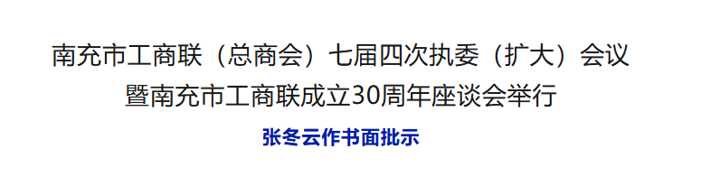 张冬云在批示中指出,市工商联成立30周年以来,始终坚持党对民营经济工作的领导,始终坚持“两个健康”工作主题,始终坚持围绕中心服务大局,在不同历史时期为南充经济社会发展作出了重要贡献,值得充分肯定。当前,南充已进入高质量发展关键期、副中心培育机遇期、现代化建设攻坚期,希望市工商联以成立30周年为契机,深入学习贯彻习近平新时代中国特色社会主义思想和党的二十届三中全会以及省委、市委全会精神,紧紧围绕市委“1558”工作思路,守正创新、开拓进取,在强化思想政治引领、助力民营经济发展、推动优化营商环境等方面继续发挥重要作用,不断开创工商联事业发展新局面,为加快建成省域经济副中心、奋力谱写现代化南充建设新篇章贡献力量、再立新功。