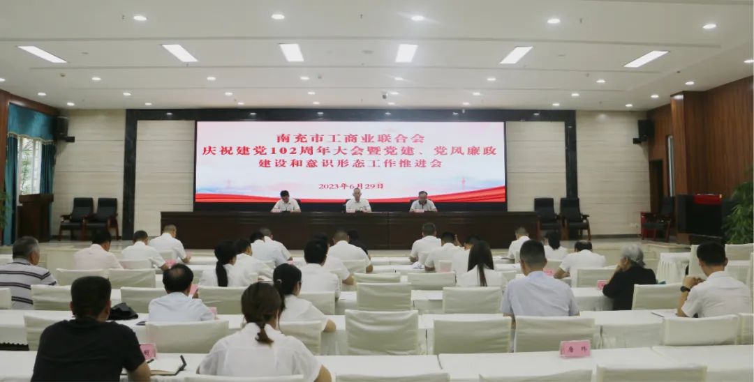 6月29日,市工商联在机关一楼会议室组织召开庆祝建党102周年大会暨党建、党风廉政建设和意识形态工作推进会。市委统战部副部长、市工商联党组书记黄靖出席大会并讲话。市工商联党组成员、副主席、市工商联所属商协会综合党委书记丁健康,市工商联党组成员、副主席、市民主党派工商联机关党支部书记李国良出席会议。市民主党派工商联机关党支部全体党员、市工商联所属商协会综合党委各党支部党员代表和市工商联执常委代表、机关干部职工50余人参加会议。